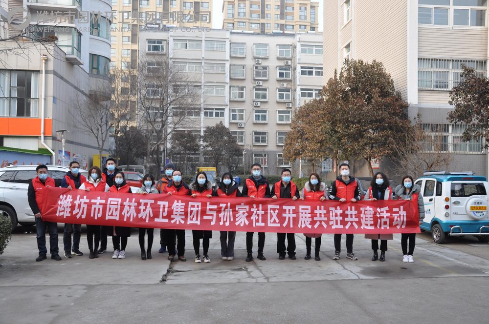 1月26 日下午,濰坊市園林環(huán)衛(wèi)集團(tuán)與孫家社區(qū)開(kāi)展“雙報(bào)到”活動(dòng),集團(tuán)公司20余名黨員干部職工參加了活動(dòng)。園林環(huán)衛(wèi)集團(tuán)黨員干部利用自身行業(yè)優(yōu)勢(shì),自備84消毒液、噴壺、手動(dòng)噴霧器等消殺物資、設(shè)備,主動(dòng)承擔(dān)孫家社區(qū)轄區(qū)內(nèi)園林小區(qū)環(huán)境衛(wèi)生的消殺工作,以實(shí)際行動(dòng)彰顯園林環(huán)衛(wèi)人的責(zé)任和擔(dān)當(dāng)。