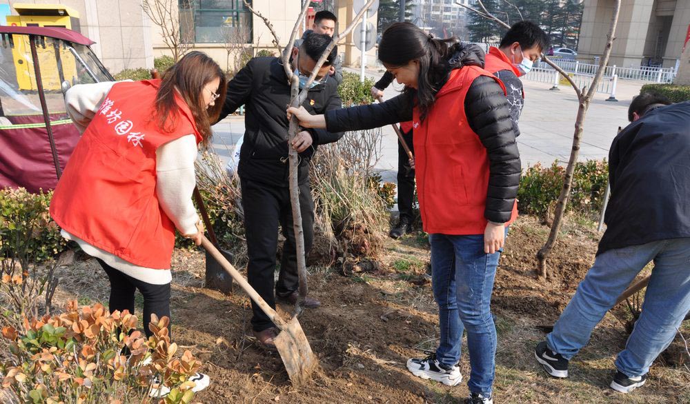 春風催新綠,植樹正當時——濰坊市園林環(huán)衛(wèi)集團與孫家社區(qū)開展黨員“雙報到”植樹送綠活動