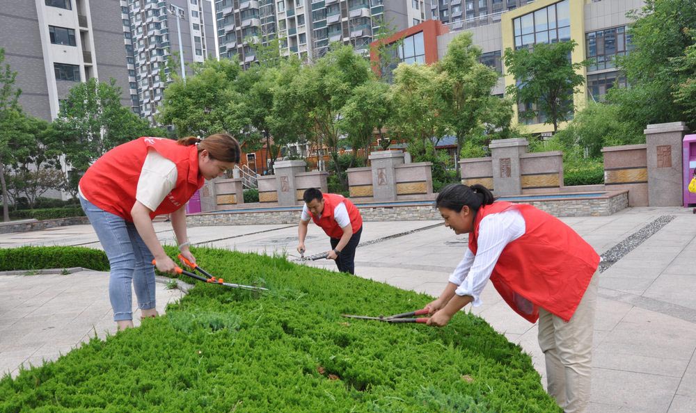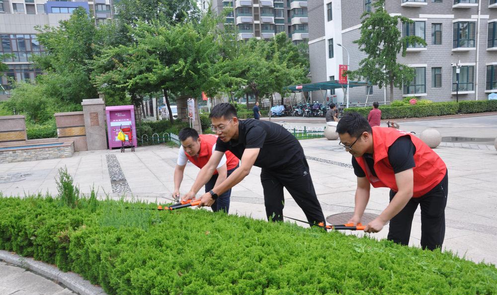 活動中,黨員志愿者身穿紅馬甲,手拿修剪專用剪,或持掃帚穿梭在綠化帶中,對東方太陽城小區(qū)內(nèi)的模紋進(jìn)行修剪、整形,同時(shí)對綠化帶內(nèi)的雜草進(jìn)行清理,達(dá)到了“修枝整形助力美化家園、扮靚顏值倡導(dǎo)愛綠護(hù)綠”的目的,獲得了居民們的一致稱贊。
