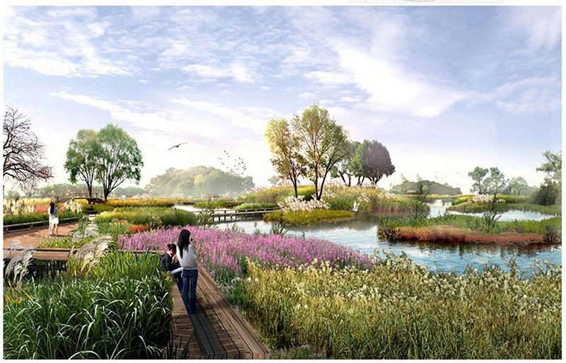 虞河上游綜合整治景觀工程位于虞河上游,是自南向北的重要景觀綠軸。定位為“生態(tài)、自然、簡約”的郊野公園,圍繞生態(tài)河道和郊野公園做重點(diǎn)設(shè)計(jì),達(dá)到生態(tài)與景觀相融合、景觀與人文相結(jié)合。以野為美,重點(diǎn)突出野趣。在設(shè)計(jì)理念上堅(jiān)持治水與親水功能并重,兼顧恢復(fù)自然生態(tài)環(huán)境與滿足人們休閑、娛樂、健身等多層次需求,打造以人為本的公共活動空間,同時(shí)與濰坊歷史文化密切融合,景觀設(shè)計(jì)應(yīng)結(jié)合周邊環(huán)境,使濱水空間和城市空間相互滲透,有機(jī)的融為一體。整個(gè)景區(qū)景觀層次分明、水景表現(xiàn)豐富,注重植物的色相、季相變化。春觀油花海,夏觀荷柳蔭,秋觀楓葦?shù)遥^松竹雪,呈現(xiàn)四季常青、三季有花的生態(tài)水景觀效果。