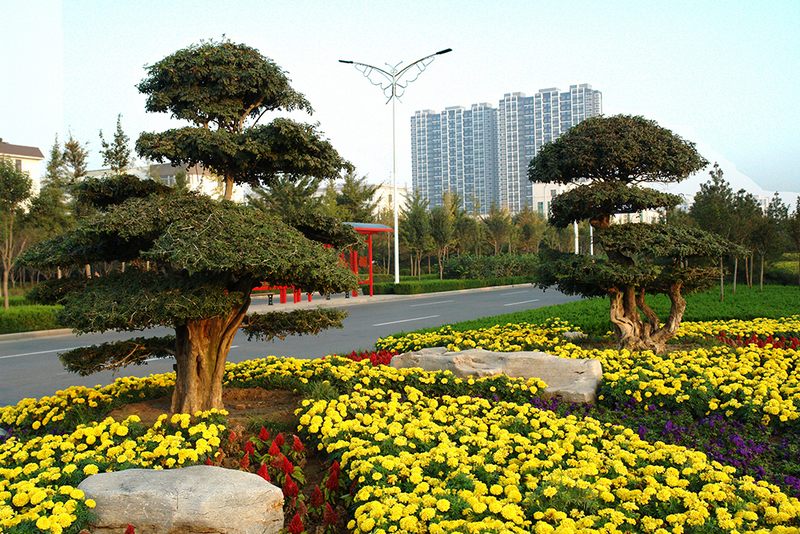 北海路綠化(市直管區(qū)域段:鐵路橋至14號(hào)口)全長(zhǎng)12.7公里,綠化面積10余萬(wàn)平方米。沿北海路一路,苗木旺盛,色彩艷麗,管理精細(xì),修剪精致,干凈有序,生態(tài)自然,成為全市道路綠化管理的樣板。一是日常管理精細(xì)化。集團(tuán)公司一線綠化養(yǎng)護(hù)隊(duì)伍埋頭苦干,默默奉獻(xiàn),不搞表面文章,衛(wèi)生、修剪、澆水、施肥、治蟲、除草等各環(huán)節(jié)十年如一日,一絲不茍,積極營(yíng)造優(yōu)美的道路景觀綠化效果。二是苗木修剪專業(yè)化。北海路模紋達(dá)30余萬(wàn)平方米,將近占整個(gè)綠化的一半,面積大,修剪難度大,標(biāo)準(zhǔn)要求高。集團(tuán)公司專門組建技術(shù)熟練的20余名修建人員,常年堅(jiān)持,始終如一;八米帶的油松、對(duì)節(jié)白蠟,專門整形,營(yíng)造景觀;景石周邊的迎春,抽枝修剪,錯(cuò)落有致,生態(tài)自然,堅(jiān)持景觀與自然相結(jié)合。三是綠地保潔動(dòng)態(tài)化。北海路車流量大,車拋垃圾多,分車帶撿拾垃圾難度大,每天清晨,組織養(yǎng)護(hù)工人避開(kāi)車流量高峰,撿拾車拋垃圾,維護(hù)優(yōu)美環(huán)境。