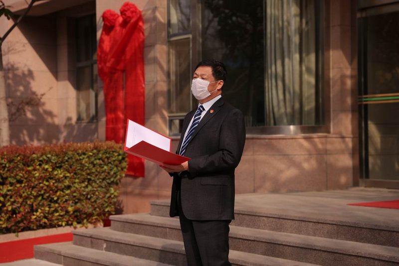 最后,在全體與會人員的倒數(shù)聲中,集團公司黨委書記、董事長張健,總經(jīng)理單云華共同走到揭牌處,伴著全場的鼓掌歡呼,共同揭下幕布,為揭牌儀式圓滿劃下句號。