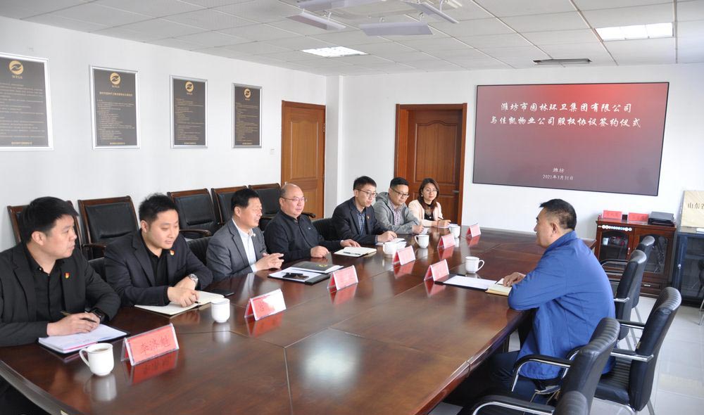 濰坊市園林環(huán)衛(wèi)集團(tuán)與佳凱物業(yè)公司股權(quán)協(xié)議簽約儀式舉行