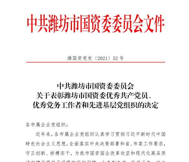 在慶祝中國(guó)共產(chǎn)黨成立100周年之際,為大力營(yíng)造弘揚(yáng)先進(jìn)、崇尚先進(jìn)、學(xué)習(xí)先進(jìn)的濃厚氛圍,市國(guó)資委黨委作出《關(guān)于表彰濰坊市國(guó)資委優(yōu)秀共產(chǎn)黨員、優(yōu)秀黨務(wù)工作者和先進(jìn)基層黨組織的決定》,市園林環(huán)衛(wèi)集團(tuán)權(quán)屬子公司怡景公司支部書記、經(jīng)理李濟(jì)魁同志榮獲“濰坊市國(guó)資委優(yōu)秀共產(chǎn)黨員”稱號(hào);市園林環(huán)衛(wèi)集團(tuán)黨群工作部副部長(zhǎng)胡敬敬榮獲“濰坊市國(guó)資委優(yōu)秀黨務(wù)工作者”稱號(hào);濰坊市白浪河綠化有限責(zé)任公司黨支部榮獲“濰坊市國(guó)資委先進(jìn)基層黨組織”稱號(hào)。