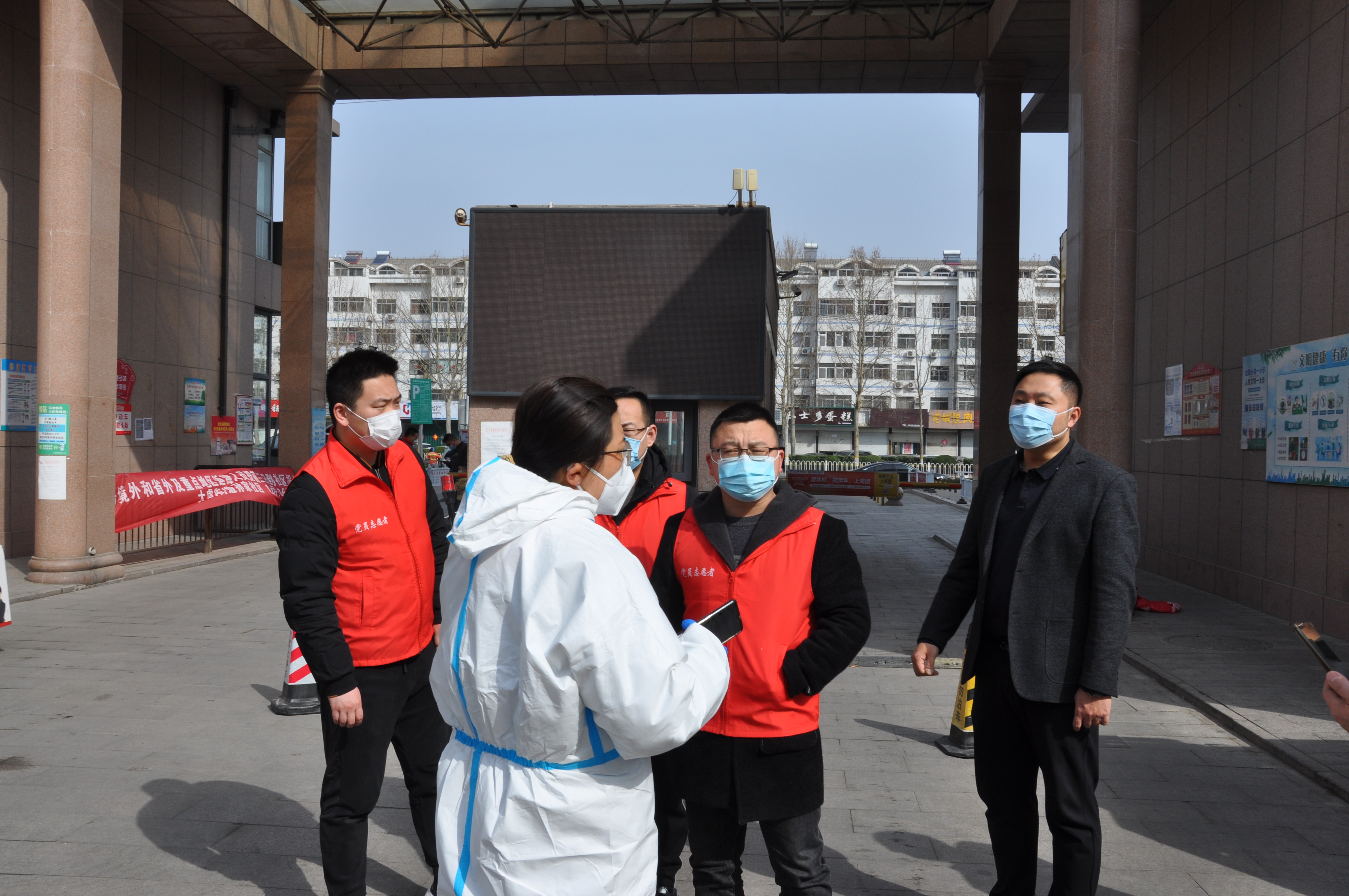 ▲集團公司戰(zhàn)“疫”先鋒隊向大虞街道孫家社區(qū)黨委書記、主任張光輝詳細了解現(xiàn)場情況