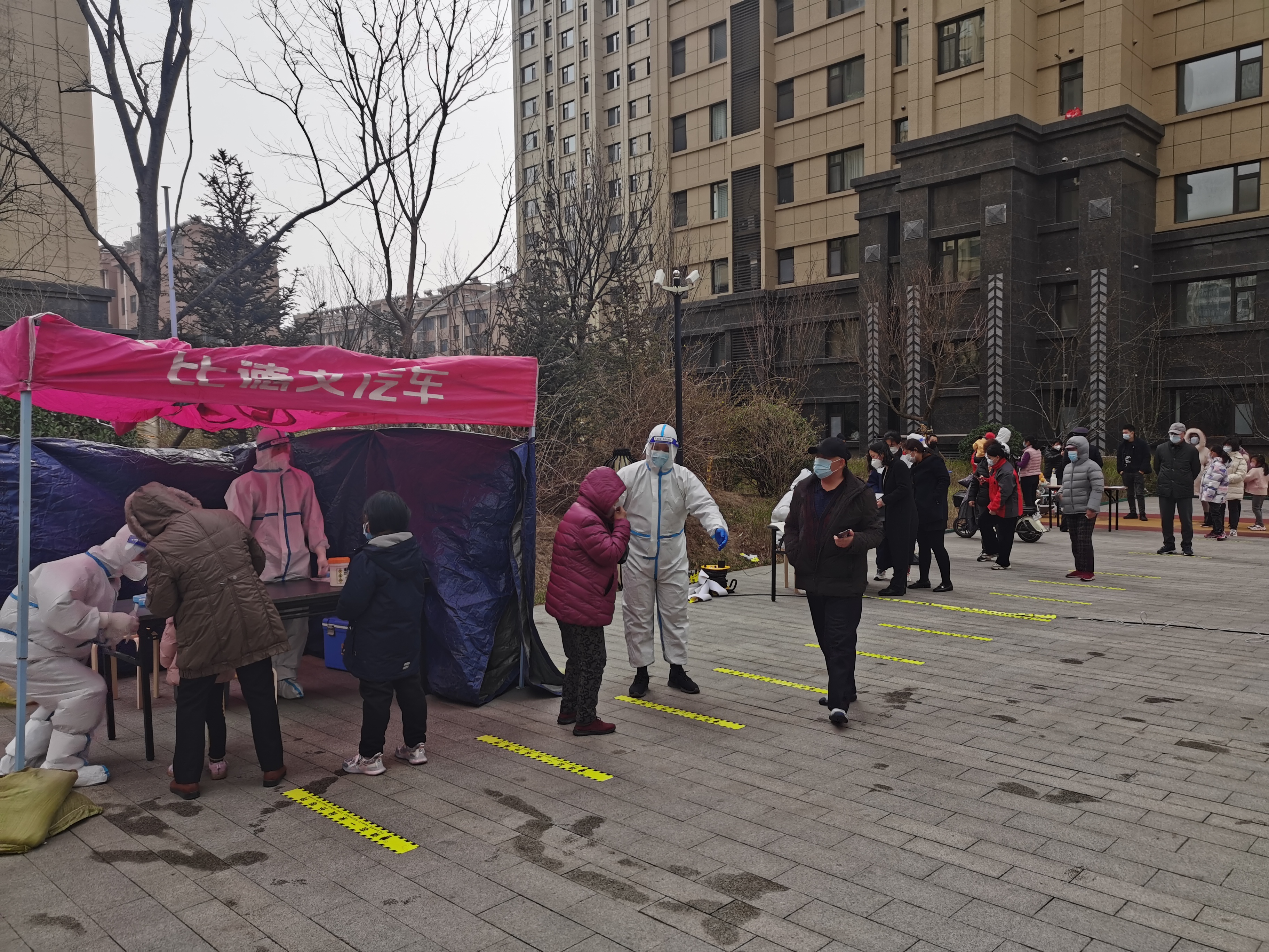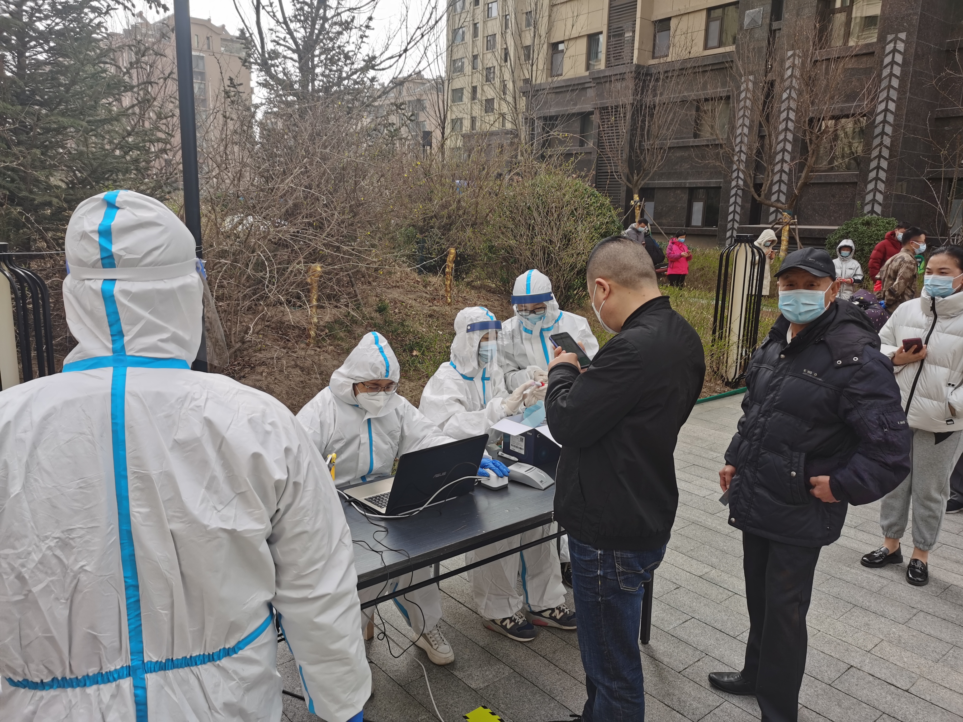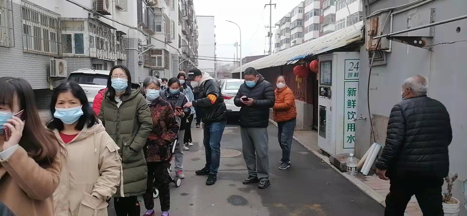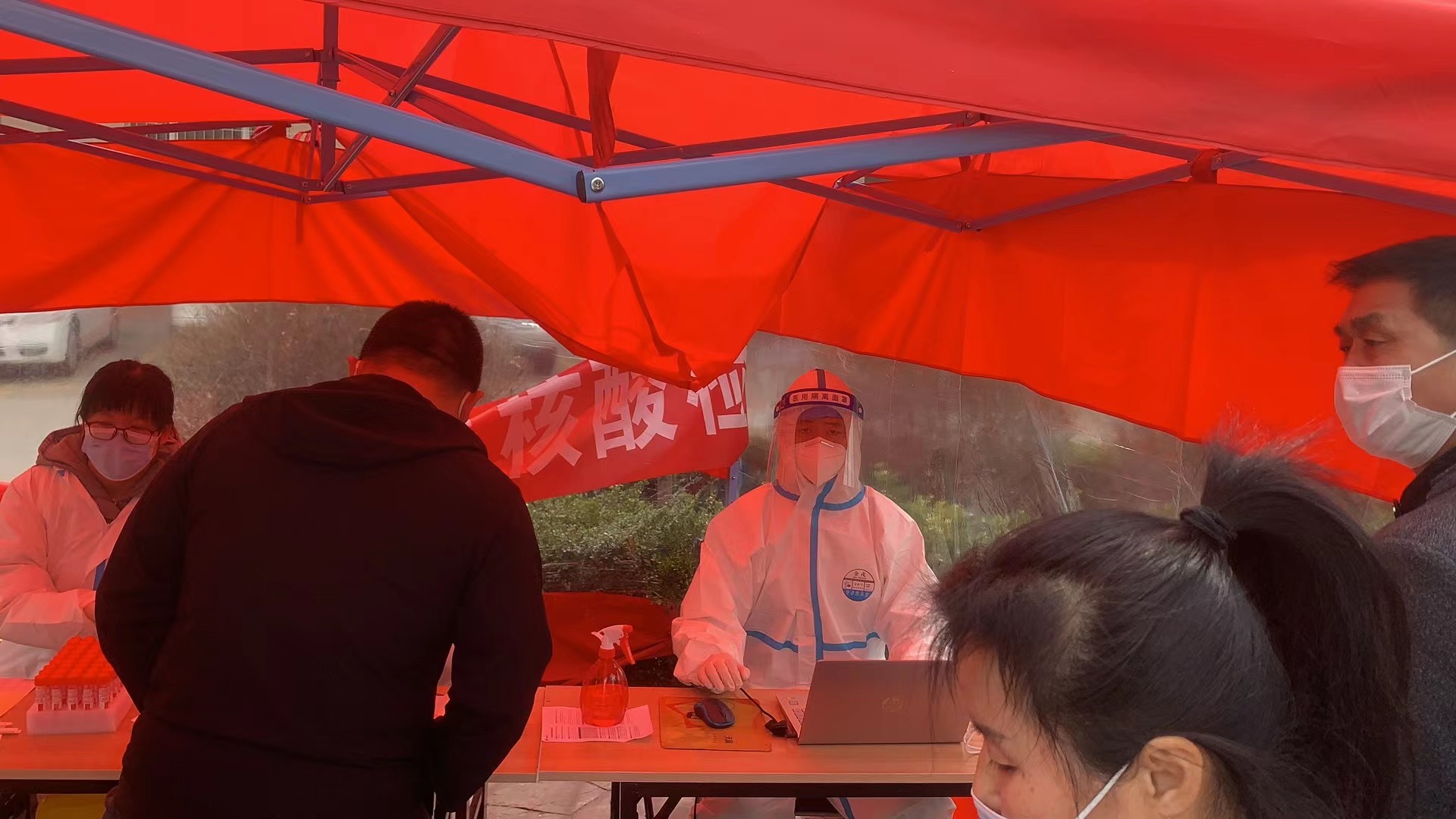 ▲集團公司戰(zhàn)“疫”先鋒隊協(xié)助大虞街道孫家社區(qū)進行核酸檢測工作