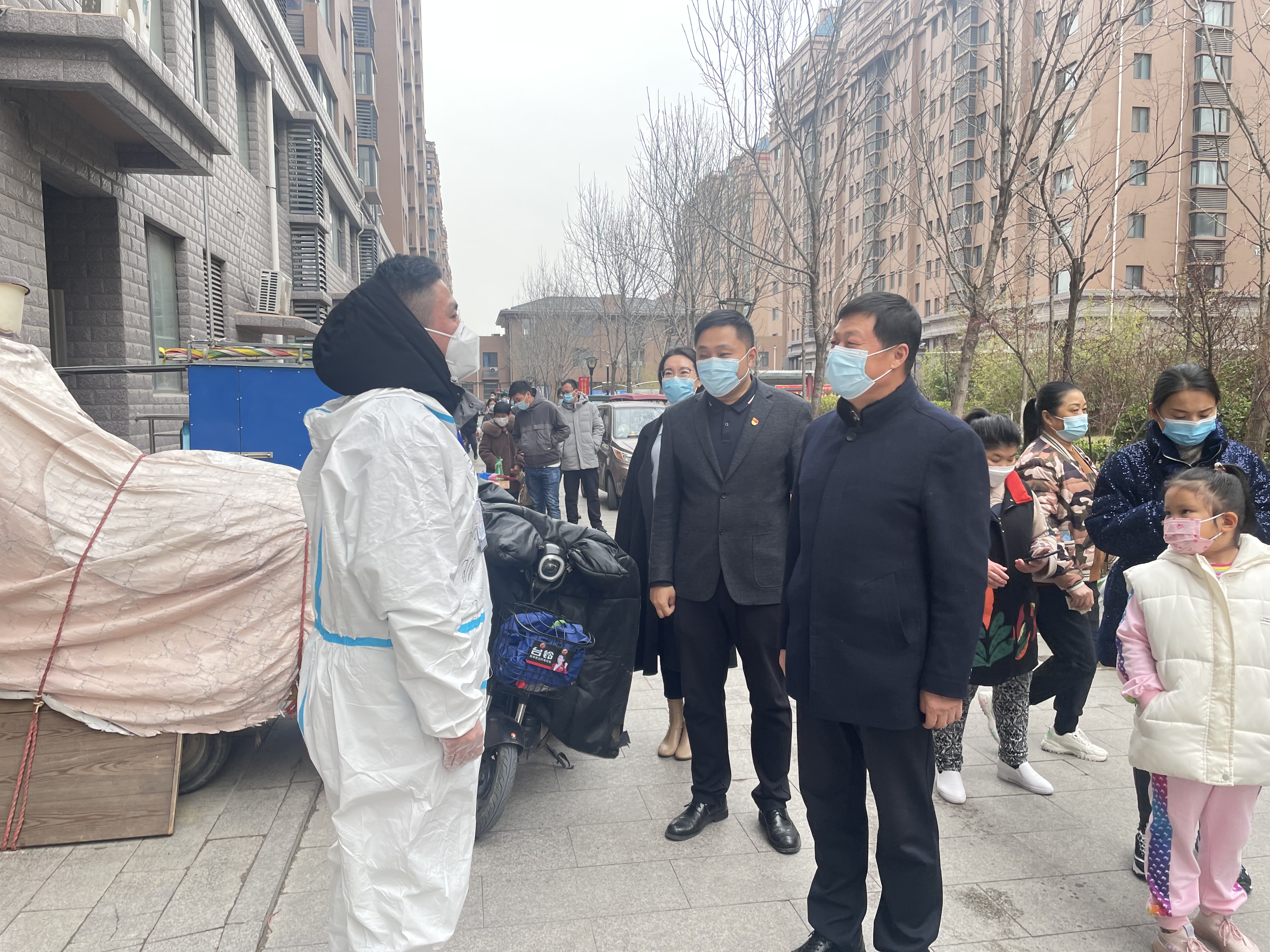 ▲集團(tuán)公司黨委書記、董事長(zhǎng)張健現(xiàn)場(chǎng)了解社區(qū)疫情防控工作,并詳細(xì)詢問(wèn)社區(qū)需求