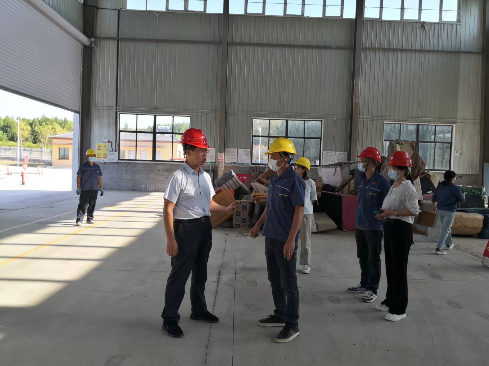 ▲副總經(jīng)理管從茂在大件垃圾處置項(xiàng)目車間進(jìn)行安全督查