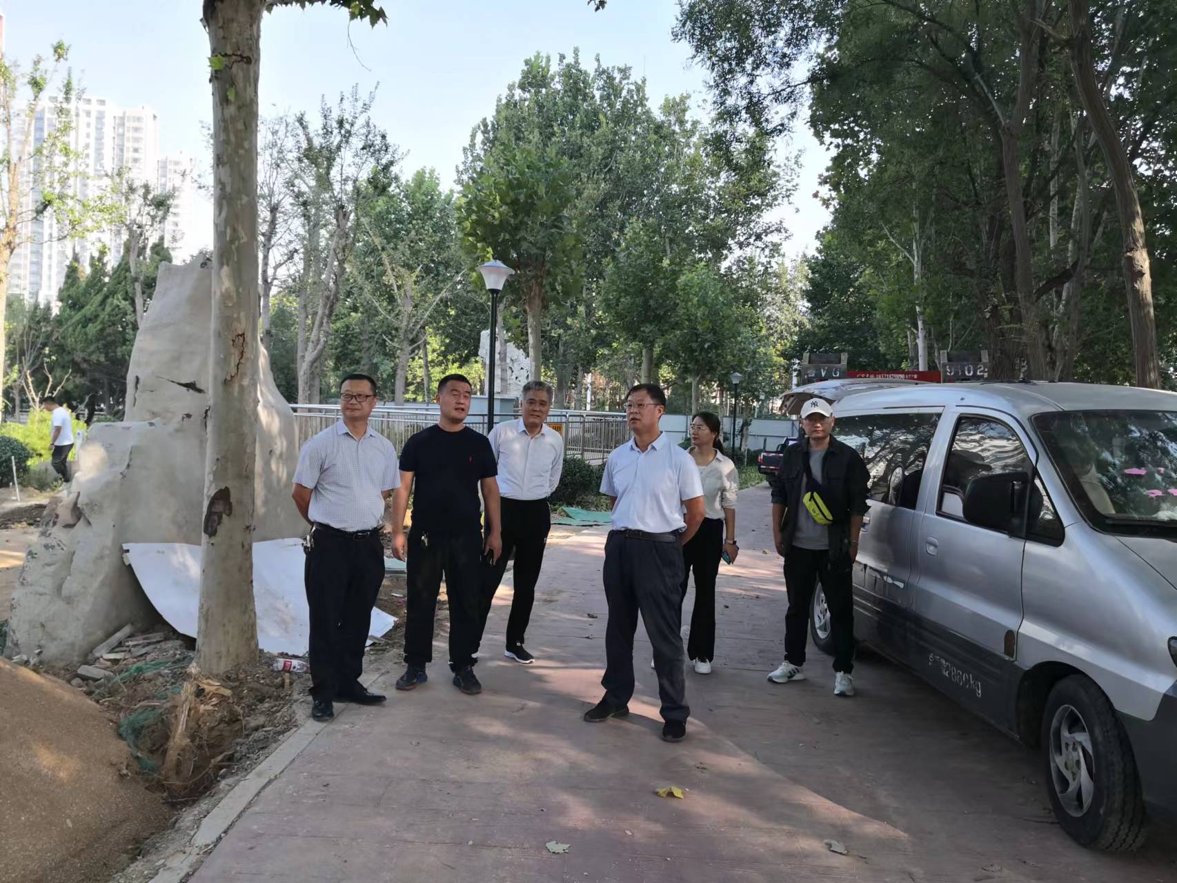 ▲副總經(jīng)理管從茂在虞河景區(qū)口袋公園北宮街標(biāo)段(上)、玄武街標(biāo)段(下)進(jìn)行安全督查