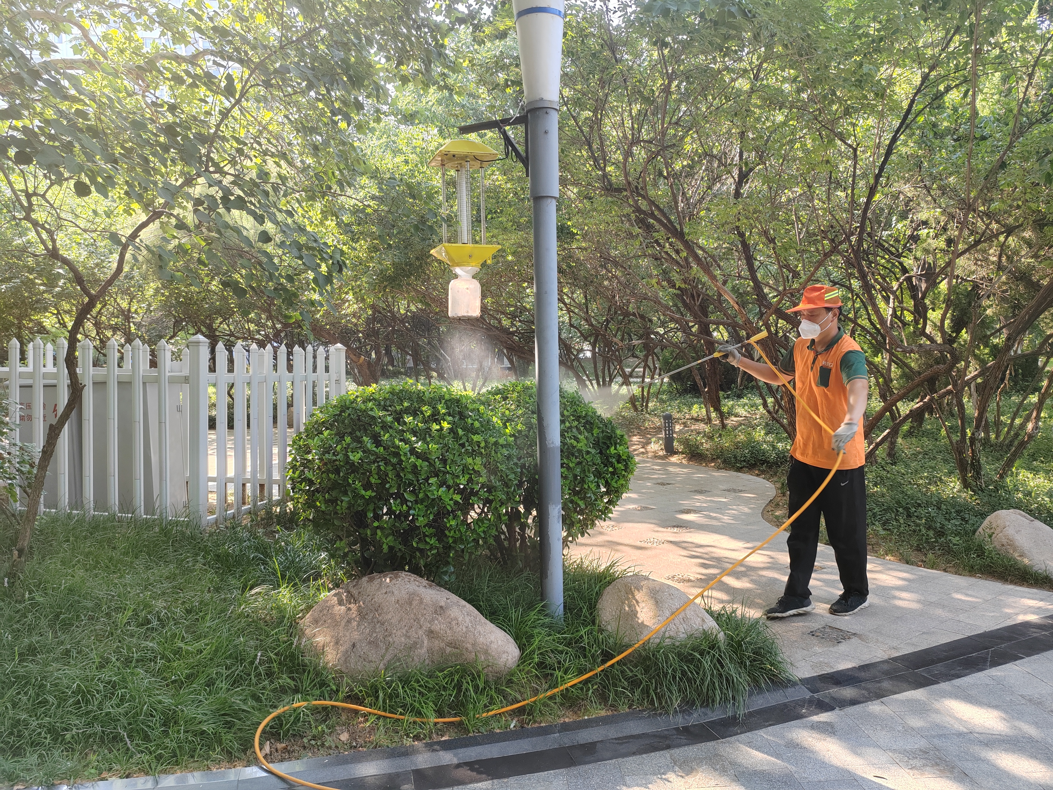 怡景公司植物園項(xiàng)目組采取“以防為主、防治結(jié)合”的方案,通過(guò)懸掛滅蚊器、噴灑農(nóng)藥等物理與化學(xué)防治相結(jié)合方式,加大病蟲(chóng)害防治力度。針對(duì)對(duì)人流量大的路段,盡量避開(kāi)人流密集時(shí)間噴藥,實(shí)施了夜間機(jī)械霧炮噴藥,做到噴藥防治無(wú)盲點(diǎn)、無(wú)死角,本月共噴灑農(nóng)藥120余公斤。