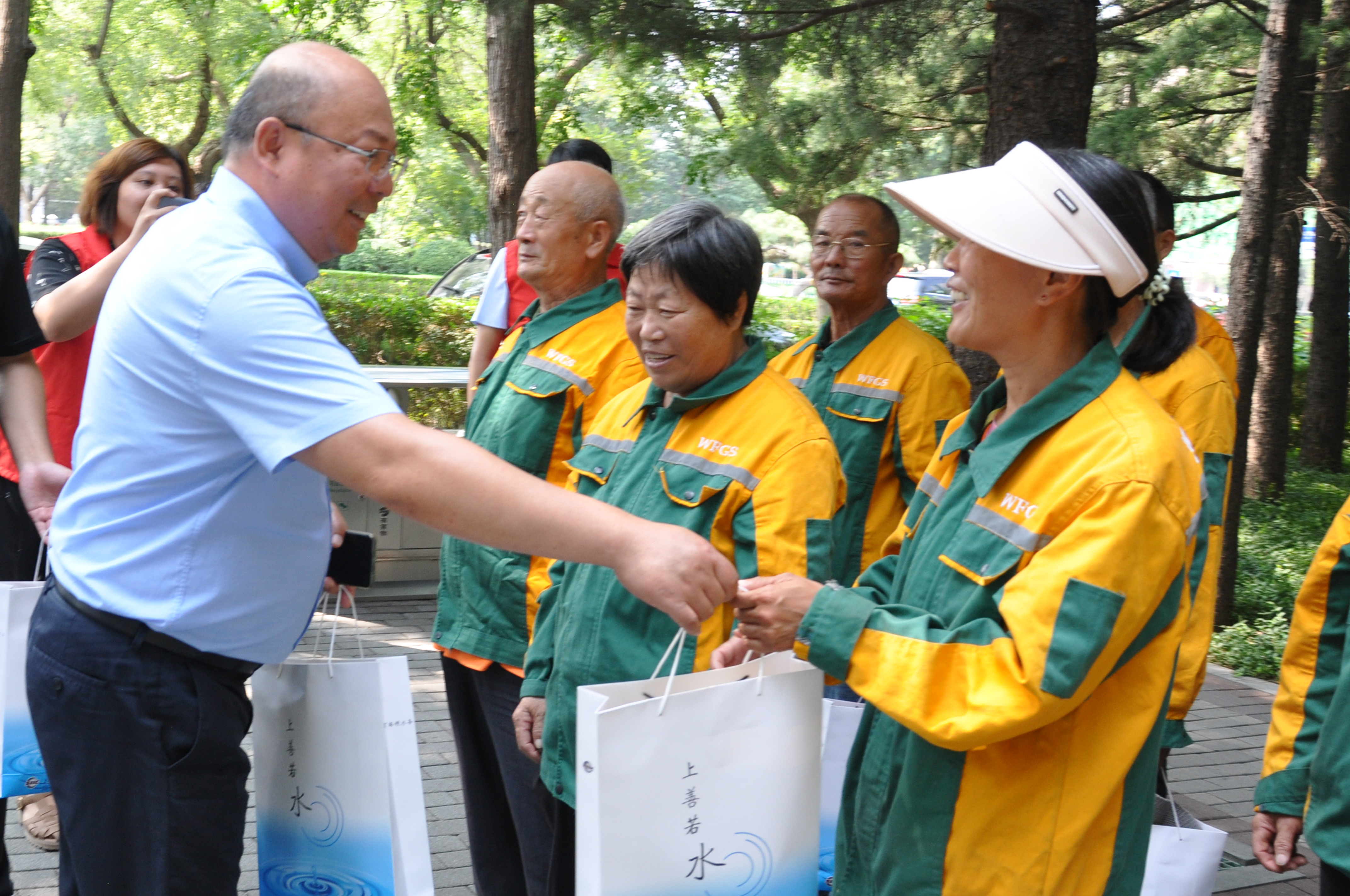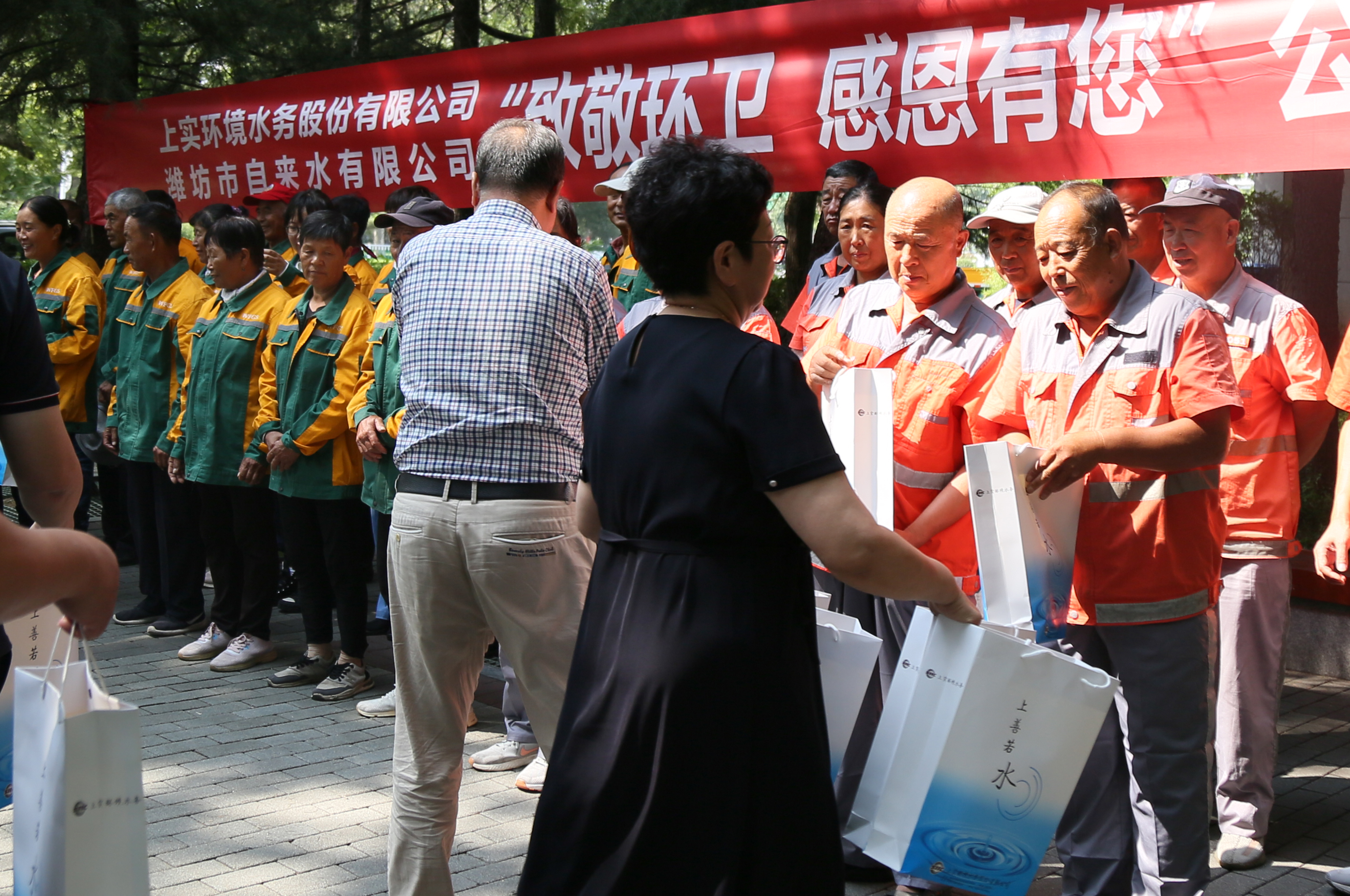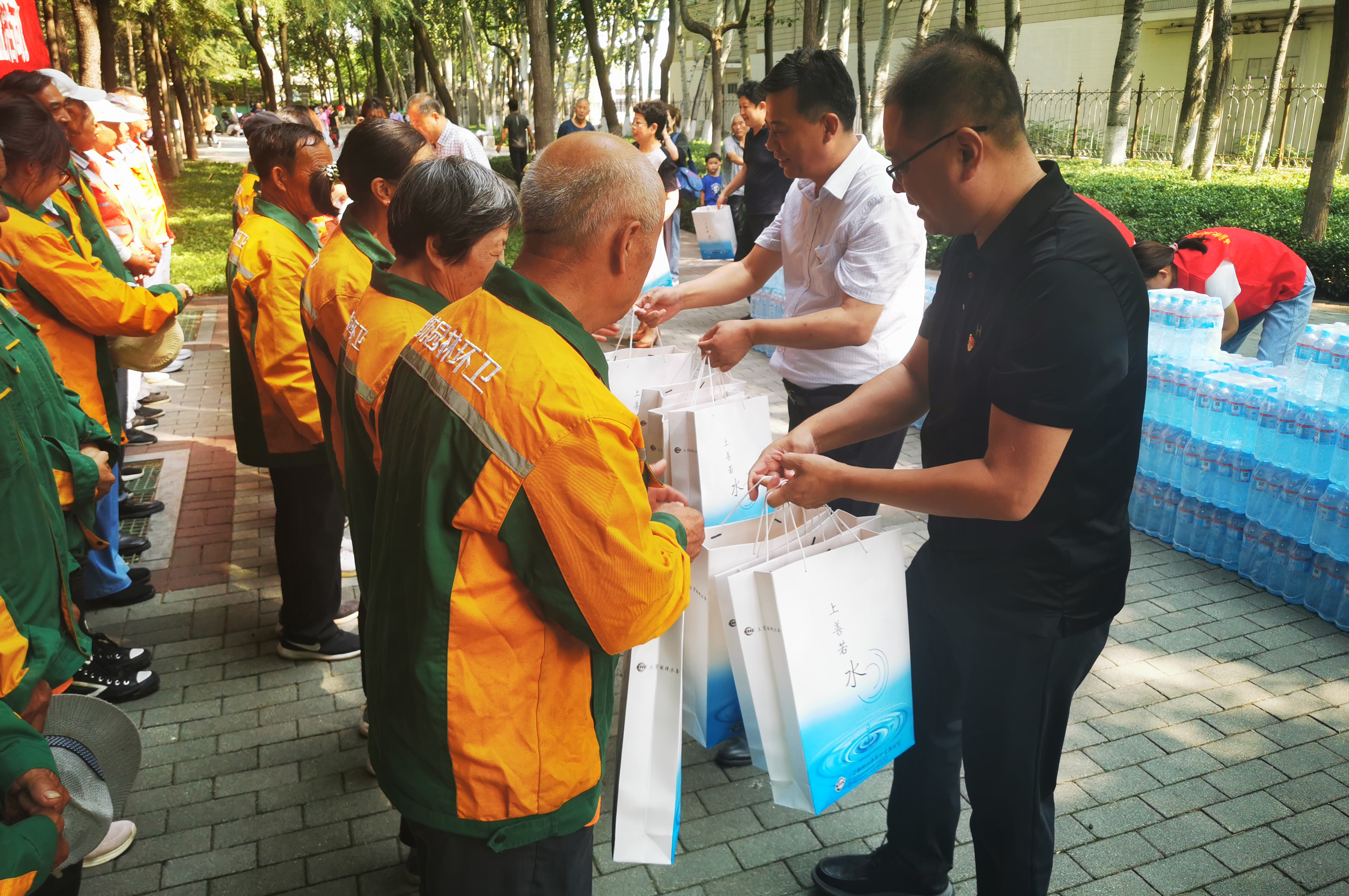 為深入學習貫徹習近平新時代中國特色社會主義思想和黨的二十大精神,充分發(fā)揮黨員先鋒模范作用,為一線園林環(huán)衛(wèi)工人辦實事、做好事。9月5日,上實環(huán)境水務(wù)公司、市自來水公司在市園林環(huán)衛(wèi)集團代管市直管綠地北海路口袋公園筠石園開展了“濃情金秋·愛心慰問園林環(huán)衛(wèi)工人”的志愿服務(wù)活動。濰坊市城管局二級調(diào)研員臺炳友,市園林環(huán)衛(wèi)服務(wù)中心黨委委員、副主任任孝云,環(huán)衛(wèi)保潔服務(wù)科科長閆祥密,上實環(huán)境水務(wù)公司紀委書記、工會主席范曉東,市自來水公司副總經(jīng)理王吉濤,集團公司黨委副書記、總經(jīng)理單云華,副總經(jīng)理管從茂,黨委副書記宮君出席了本次活動。