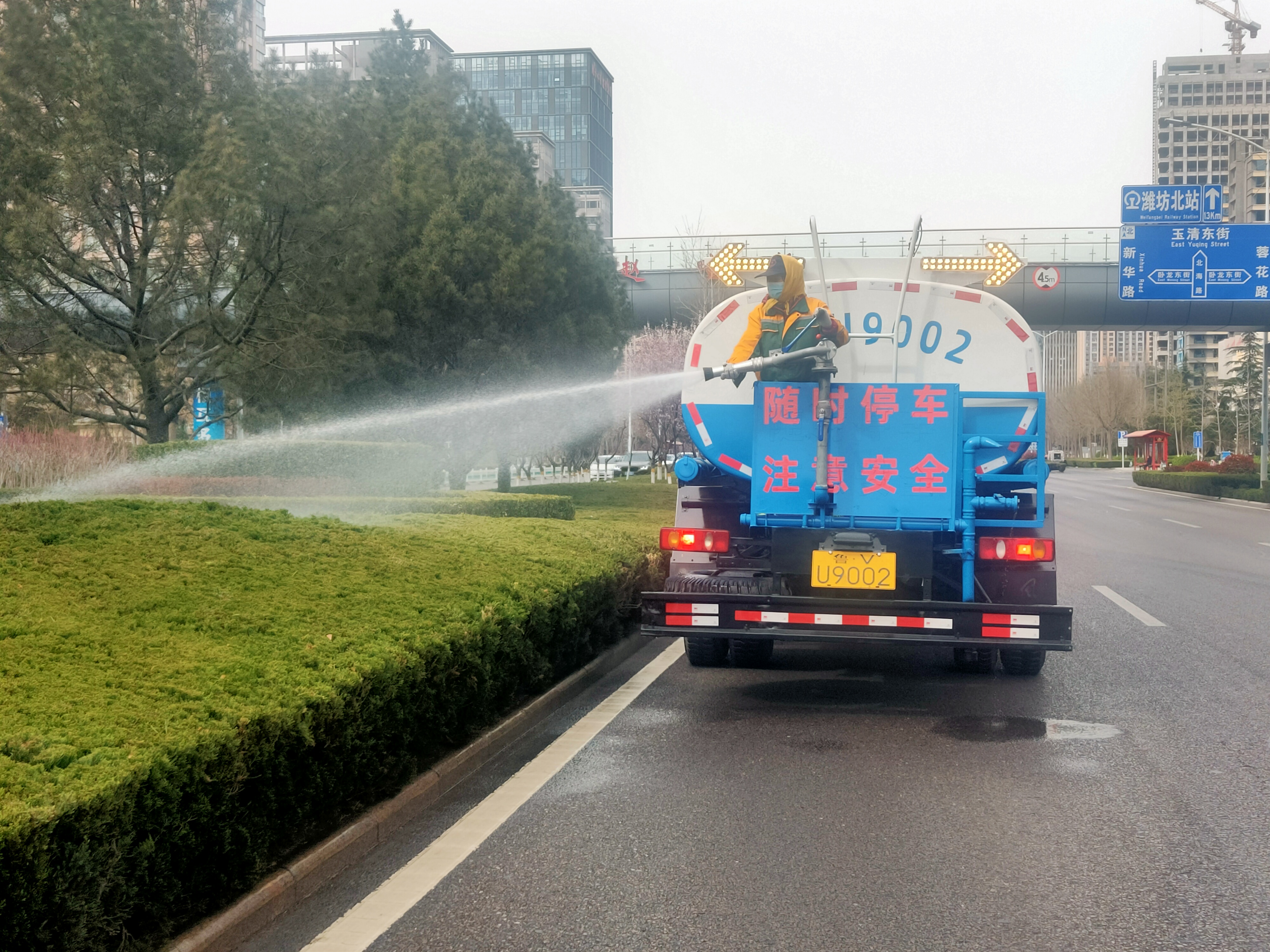 天氣轉(zhuǎn)暖,多風(fēng)易揚(yáng)塵。自3月8日起,市園林環(huán)衛(wèi)集團(tuán)怡景公司全面開展北海路春季環(huán)境衛(wèi)生“大清洗、大整治、大提升”活動。怡景公司重點(diǎn)對北海路段的綠化帶苗木、便民設(shè)施等進(jìn)行全面沖洗,共出動作業(yè)人員15人,罐體容積10立方的作業(yè)水車2輛,每天除塵面積9萬平方,加大路面保潔力度,有效降低了粉塵污染,改善了空氣質(zhì)量。